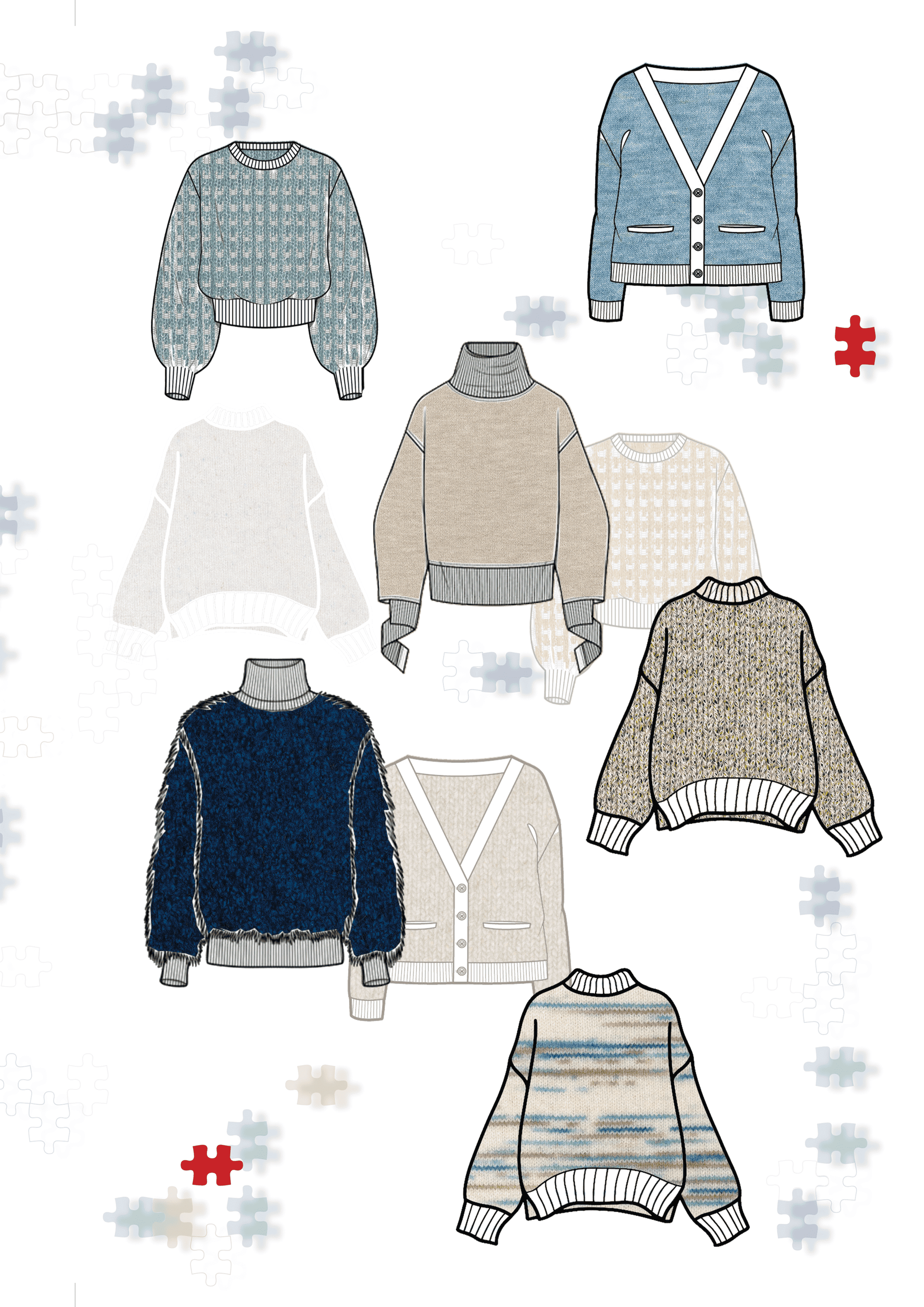 This is not a trend book but a book to show new direction from creative thinking, conceptual design, consuming pattern to normality of daily life in the coming season through knitting techniques. An ordinary yarn knit into an extraordinary work, V knit…Unique. Bi-annual publications provide readers luxuries of time to explore and inspire.